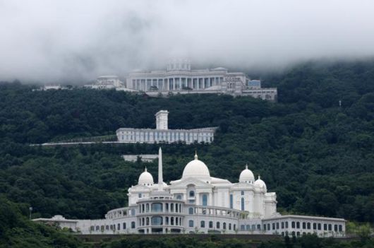 김건희 특검이 통일교를 전격 압수수색한 18일 경기 가평군 통일교 천원궁(아래부터), 천승전, 천정궁박물관 모습. 뉴시스 |
