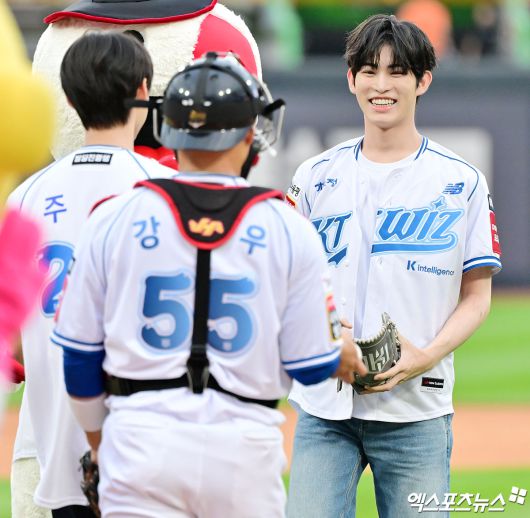 (엑스포츠뉴스 수원, 김한준 기자) 18일 오후 수원KT위즈파크에서 열린 '2025 신한 SOL Bank KBO리그' 한화 이글스와 KT 위즈의 경기, 경기 전 킥플립 민제가 시구에 임하고 있다.김한준 기자 kowel@xportsnews.com
