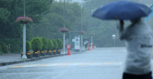 18일 오후 제주시 아라동 제주대 캠퍼스에 게릴라성 폭우가 쏟아지고 있다. |
