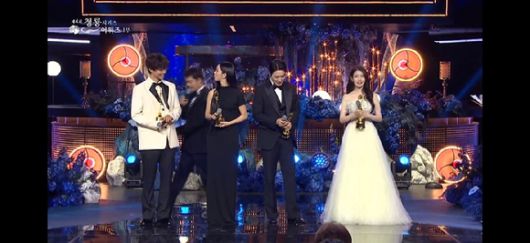 [조이뉴스24 김양수 기자] 배우 박보검, 이혜리, 이준혁, 아이유가 '청룡시리즈어워즈' 업비트 인기스타상에 올랐다. 이준영은 이준혁과 비슷한 이름 탓에 혼선을 일으키고 무대에 올랐다 다시 내려오기도 했다.
