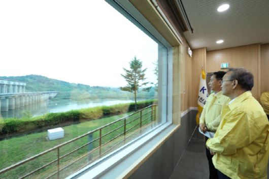 통일부는 김남중 통일부 차관이 16일 경기 연천군 임진강 유역의 군남댐, 필승교 등을 찾아 수해 방지 상황을 점검했다고 밝혔다. 사진은 김남중 통일부 차관이 수해 방지 상황을 점검하는 모습. (사진=통일부) |