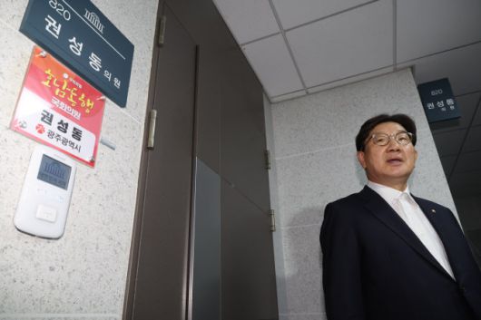 권성동 국민의힘 의원이 18일 서울 여의도 국회 의원회관에서 김건희 특검의 압수수색이 진행중인 자신의 의원실로 이동하고 있다. (사진=뉴시스) |