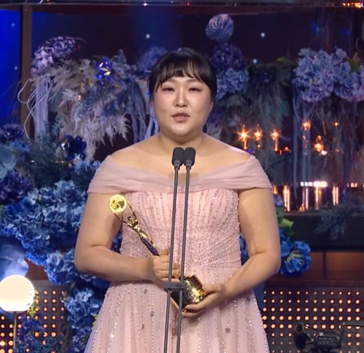 이날 여자예능인상에는 'My name is 가브리엘' 가비, '야구대표자 : 덕후들의 리드 시즌1, 2' 엄지윤, 'SNL 코리아 시즌 6, 7' 이수지, '미스터리 수사단' 이혜리, '대환장 기안장' 지예은이 후보에 오른 가운데 이수지가 트로피를 차지했다.