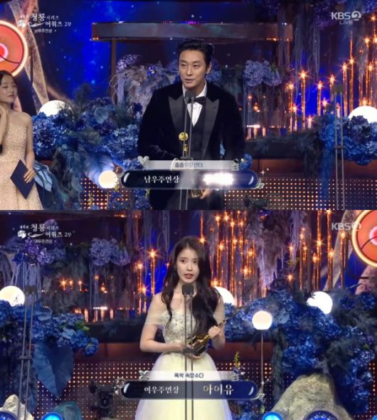 [스포츠투데이 정예원 기자] '제4회 청룡시리즈어워즈' 주지훈과 아이유가 각각 남·여우주연상을 수상했다.