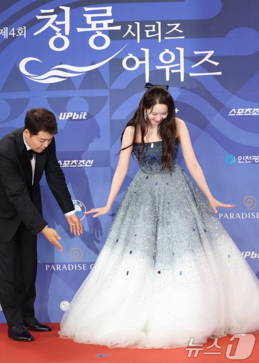 (인천=뉴스1) 권현진 기자 = 소녀시대 임윤아가 18일 인천 중구 파라다이스시티에서 열린 ‘제4회 청룡시리즈어워즈’ 레드카펫 행사에 참석해 포즈를 취하는 도중 중심을 잃고 넘어지려 하고 있다. 2025.7.18/뉴스1rnjs337@news1.krCopyright ⓒ 뉴스1. All rights reserved. 무단 전재 및 재배포, AI학습 이용 금지.