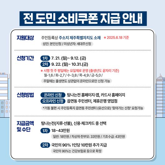 제주도는 도민들의 소비쿠폰 신청을 지원하기 위해 민생지원 전담대응팀(064-710-2510)을 운영한다.