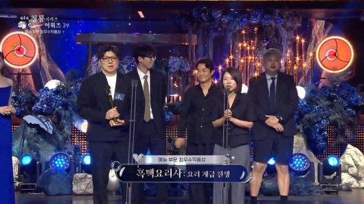 예능부문도 치열했다. 최우수작품상은 넷플릭스 '흑백요리사 요리 계급 전쟁'이 거머쥐었다. 김학민 PD는 "나탈리 포트먼이 제가 만든 작품을 보고 코멘트를 해주는 꿈 같은 일이 일어났다"고 털어놨다.