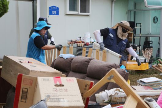 현대제철 노·사가 17~18일 한마음으로 폭우로 큰 피해를 입은 당진전통시장과 용연동 일대 수해지역을 방문해 복구작업을 도왔다.