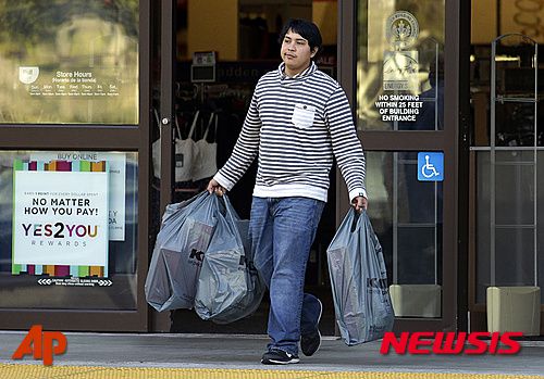 [앨러미다=AP/뉴시스] 미국 캘리포니아주 앨러미다에 있는  대형 쇼핑몰에서 물품 구입을 마친 손님이 밖으로 나오고 있다. 자료사진. 2025.07.18