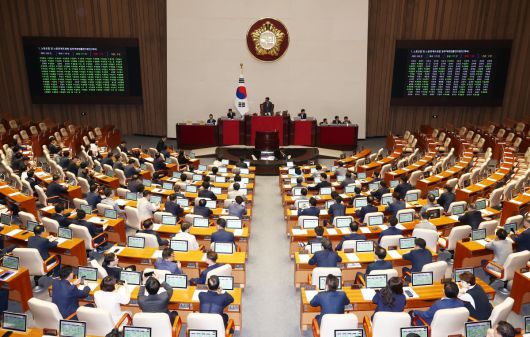5일 오후 서울 여의도 국회에서 열린 제417회 국회(임시회) 제1차 본회의에서 노동조합 및 노동관계조정법 개정안(노란봉투법)이 재적 300인 중 재석 179인, 찬성 177, 반대 2인으로 통과되고 있다. 이날 이준석, 이주영 개혁신당 의원은 반대표를 던졌다. 2024.8.5/뉴스1 |