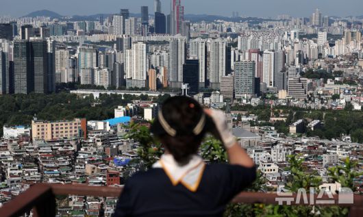 [서울=뉴시스] 서울 남산에서 아파트 단지가 내려다보이고 있다. |
