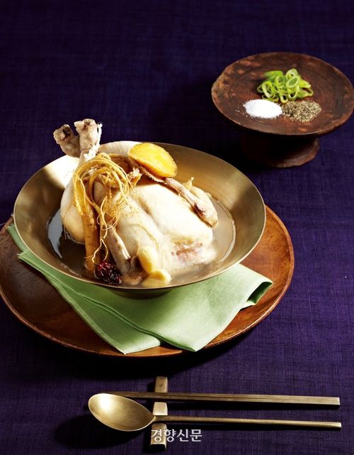 먼저 토종닭을 끓는 물에 한 번 데쳐 불순물을 제거한 뒤, 인삼과 마늘을 넣고 삶아주세요. 닭이 익으면 전골냄비에 옮겨 육수와 함께 해산물을 넣고 끓인 후 익는 순서대로 건져 먹으면 돼요. 요즘 골뱅이 철이에요. 부드럽고 쫄깃한 여름 뿔소라도 같이 넣어 먹으면 정말 맛있어요. 대파, 부추, 청경채, 배추 같은 채소를 함께 데쳐 쌈처럼 싸 먹어도 별미죠. 간은 따로 하지 않아도 되고 소금이나 후추, 초고추장, 겨자소스에 취향에 맞게 찍어 먹어요. 고기 등을 다 먹고 난 뒤에는 찰밥이나 면을 넣어 먹어도 좋아요. 2인 가족이라면 작은 육계 한 마리, 낙지 한 마리, 전복 두 개면 충분해요. 인삼이 없거나 체질에 안 맞는 분은 통마늘만 넣어도 괜찮아요. 맛과 영양이 녹아든 걸쭉한 국물 하나만으로도 여름을 이겨낼 수 있을 거예요.”
