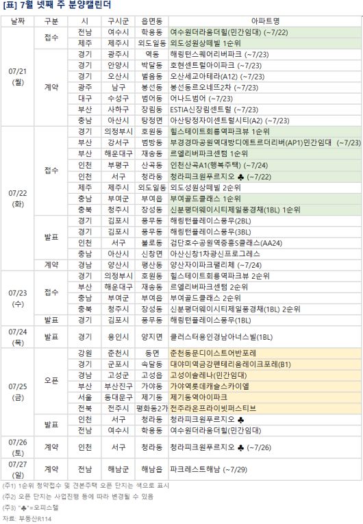 7월 넷째 주에는 전국에서 7956가구가 분양에 나선다.