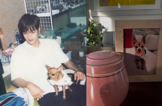 [서울=뉴시스] 배우 이민호가 SNS를 통해 반려견 ‘초코’의 죽음을 알렸다. 사진은 생전 함께한 모습(왼쪽)과 유골함 옆에 놓인 초코의 사진(오른쪽). (사진=이민호 인스타그램 캡처) 2025.07.19. photo@newsis.com *재판매 및 DB 금지 |