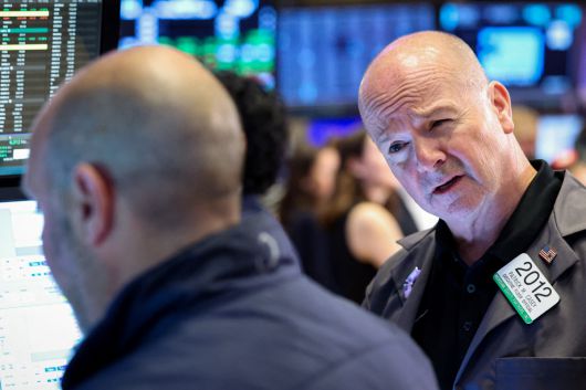 뉴욕증권거래소(NYSE)에서 17일(현지시간) 트레이더들이 대화하고 있다. 뉴욕/로이터연합뉴스 |