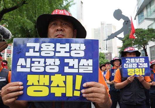고용불안 우려한 노조, 서울본사 몰려와 시위