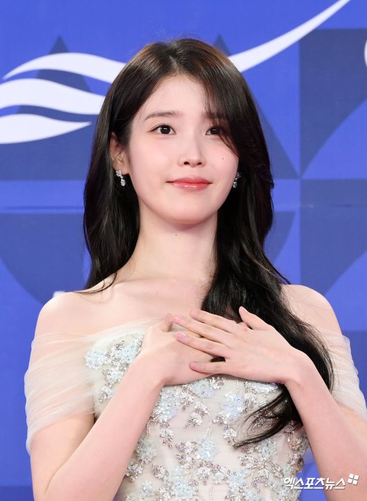 가수 겸 배우 아이유(IU/이지은)이 레드카펫 행사에 참석해 포토타임을 갖고 있다.