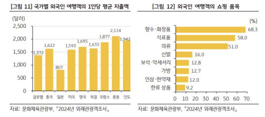 문화체육관광부 2024년 외래관광객조사에 따르면 국가별 외국인 여행객의 1인당 평균 지출액 1372달러(약 191만원, 항공료 제외)였다. 1인당 평균 지출액의 경우 중국·서구권·중동이 평균 이상을 기록한 반면 일본·동남아·대만 여행객의 지출액은 평균보다 낮았다.