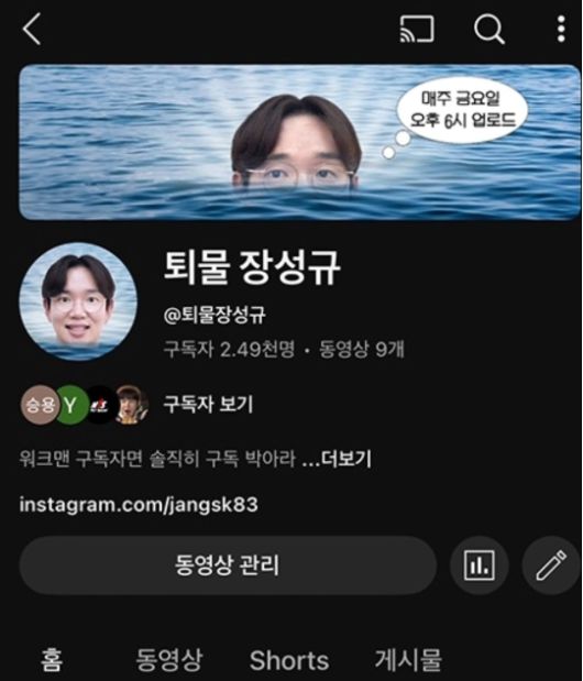 장성규는 18일 기준 구독자 2.49천명에서 단숨에 3.59천명으로 치솟았다.