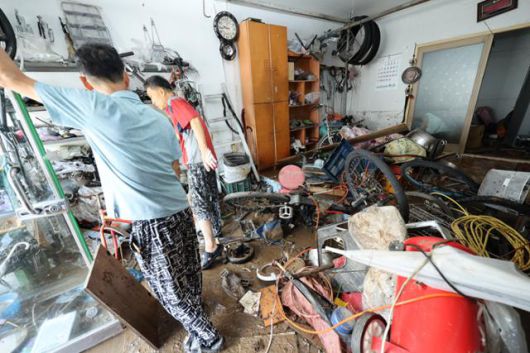 18일 광주 북구 신안동 일대 거리에 침수 피해를 입은 상가에서 복구 작업이 이뤄지고 있다. 전날 광주에는 하루 426.4㎜의 비가 내려 기상 관측 이래 가장 많은 강수량을 보였다. 연합뉴스 |