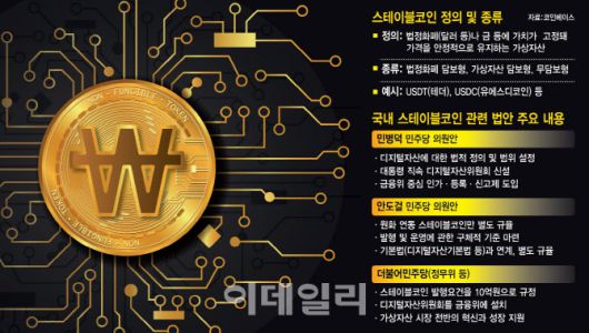 반면 한국은 현재 특금법과 가상자산법을 중심으로 가상자산 규제를 운영하고 있으나, 자금세탁방지와 이용자 자산 보호에 초점이 맞춰져 있어 발행·유통 등 생태계 전반을 포괄하기엔 한계가 있다는 지적이 제기된다. 이에 따라 국회에서는 디지털자산기본법안이 발의돼 자산연동형 디지털자산(스테이블코인 포함)의 인가제 도입과 업권별 진입규제, 공시 및 불공정거래 금지 조항 등을 포함하고 있으나, 논의는 초기 단계에 머물러 있다.