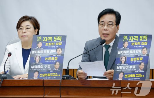 (서울=뉴스1) 김정률 기자 = 국민의힘은 19일 이진숙 부총리 겸 교육부 장관 후보자와 강선우 여성가족부 장관 후보자에 대해 "이재명 대통령은 지금이라도 인사 실패를 솔직히 인정하고, 후보자를 원점 재검토하는 것이 국민에 대한 도리이자 겸손한 자세임을 명심하기를 바란다"고 강조했다.