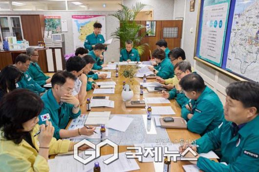 18일 집중호우 피해 대응 아산시 긴급대책회의 개최 모습(사진/아산시 제공) |