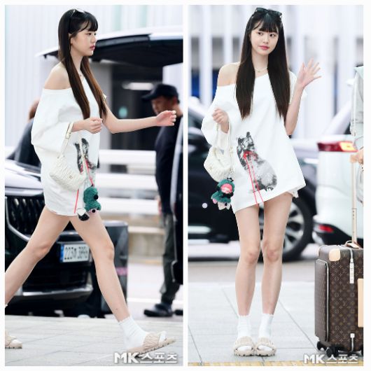 이날 아이브는 파리에서 열리는 ‘롤라팔루자’ 공연 참석 차 프랑스로 출국했다. 장원영은 긴 생머리를 자연스럽게 풀고 화이트 오프숄더 미니 원피스에 깔끔한 슬리퍼를 매치하며 상큼한 비주얼을 완성했다.