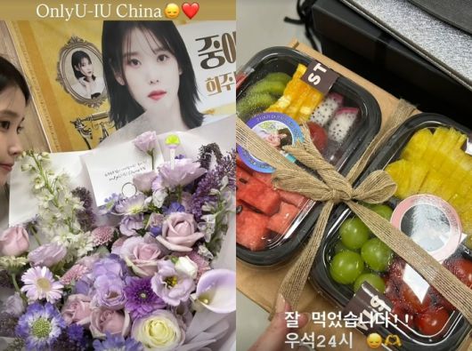 17일 아이유는 자신의 SNS를 통해 MBC 새 금토드라마 ‘21세기 대군부인’(가제) 촬영 중 받은 팬 선물을 인증했다. 공개된 사진에는 중국 팬클럽 ‘Only U-IU China’가 준비한 밥차와, 배우 변우석 팬들이 보낸 과일 도시락이 담겨 있다.