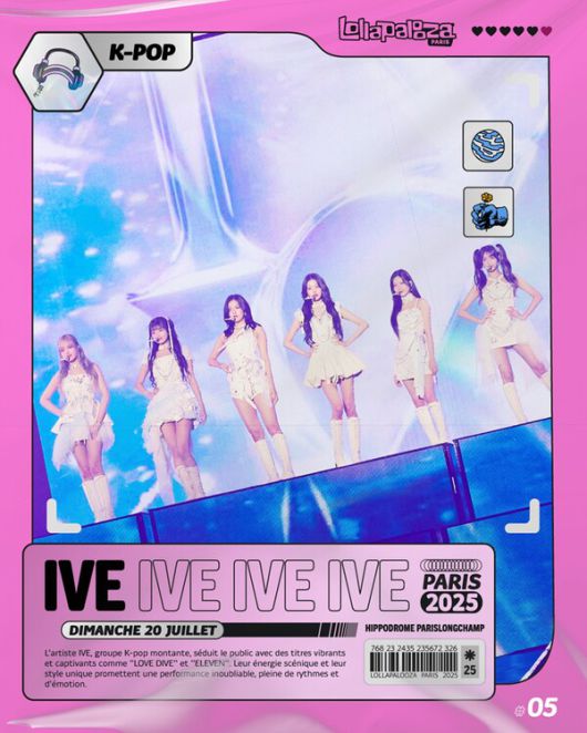 지난해 '롤라팔루자 시카고(Lollapalooza Chicago)'를 통해 글로벌 페스티벌에 첫발을 내디딘 아이브는 '롤라팔루자 베를린'과 '롤라팔루자 파리'까지 연이어 초청받으며 K팝 걸그룹 최초로 '롤라팔루자' 2년 연속, 총 세 차례 초청이라는 진기록을 세웠다.