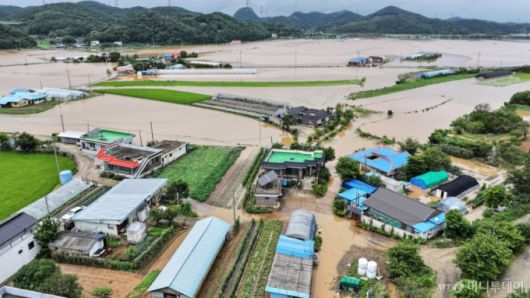 (당진=뉴스1) 김도우 기자 = 충청권을 중심으로 호우특보가 내려진 17일 충남 당진시 행정동 일대가 역천 범람으로 침수돼 있다.사진은 기사와는 관계 없음. 2025.7.17/뉴스1 Copyright (C) 뉴스1. All rights reserved. 무단 전재 및 재배포, AI학습 이용 금지. /사진=(당진=뉴스1) 김도우 기자 |