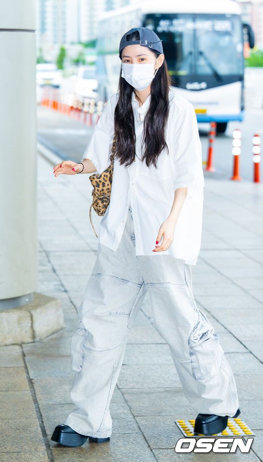한소희가 출국길에 포즈를 취하고 있다. 2025.07.19 / rumi@osen.co.kr