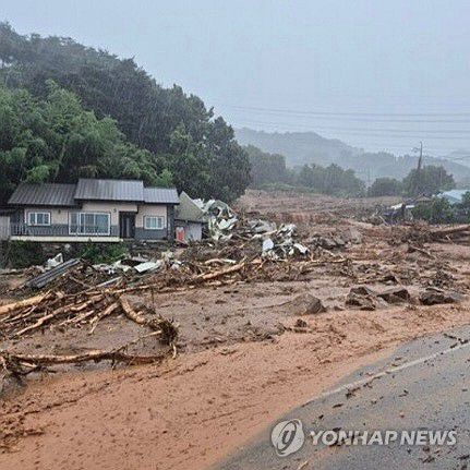 (산청=연합뉴스) 19일 경남 산청군 산청읍 부리 마을에 폭우와 산사태로 일부 주택이 파손돼 있다. 2025.7.19 [독자 김규리 씨 제공. 재판매 및 DB 금지]