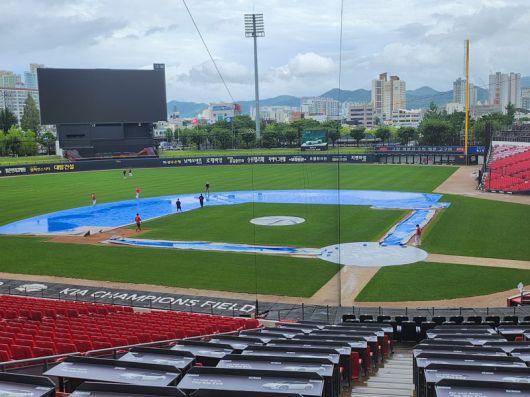 구단 관계자는 “그라운드와 잔디의 단차가 심해 정상적인 경기 진행이 불가능하다”라며 “마운드 아래에서도 물이 계속 올라오는 상황”이라고 설명했다.