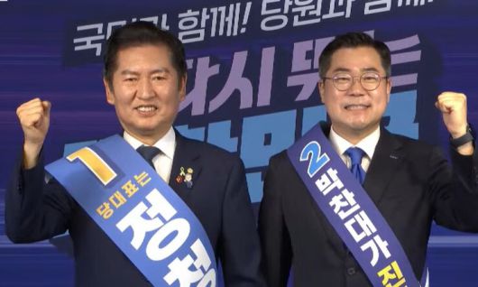 더불어민주당 대표 선출을 위한 권역별 순회경선 중 첫 번째 일정인 충청권 경선에서, 후보로 나선 정청래 의원과 박찬대 의원(기호순)이 각각 ‘싸우는 당 대표’ ‘일하는 당 대표’를 앞세워 당원 표심 잡기에 나섰다.