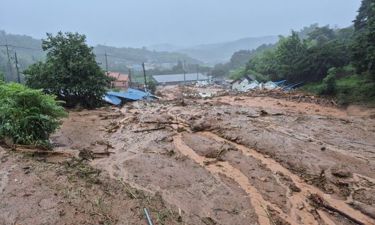 군에 따르면 이날 오후 3시쯤 산청읍 부리마을에서 각각 주택에 머물던 20대 여성 1명과 70대 부부가 실종됐다. 폭우에 흘러내린 토사에 2개의 주택이 매몰된 것으로 추정된다.