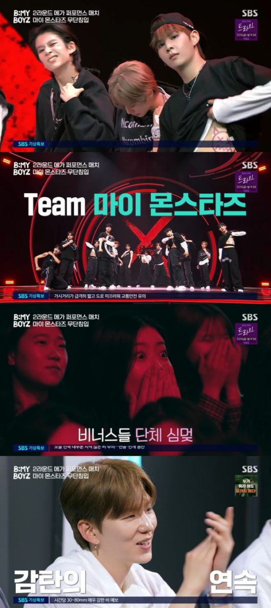 19일 방송된 SBS '비 마이 보이즈(B:MY BOYZ)'에는 톱 아이돌 몬스타엑스와 함께한 2라운드 팀 데스매치의 결과가 발표됐다.