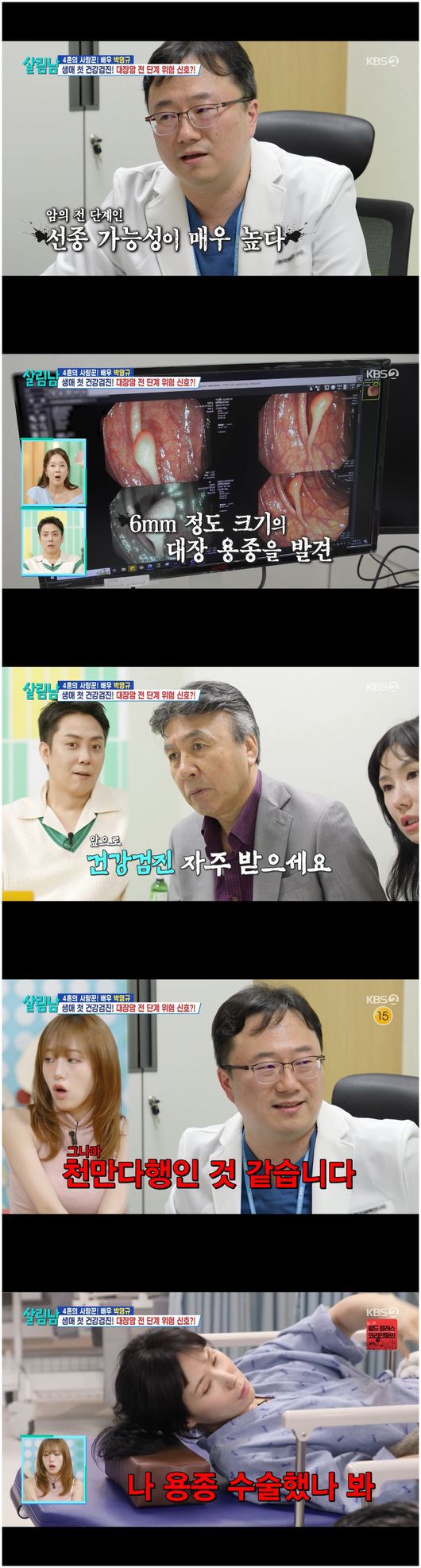 이어 박영규의 대장내시경이 시작되었다. 박영규는 6mm나 되는 용종을 떼내어 모두를 놀라게 했다. 의사는 “이 전체가 용종인데, 전체가 선종일 가능성이 많다. 조직 검사를 보냈다. 선종인 게 확인이 되면 대장 내시경을 한 번 더 해야 한다”라면서 지금이라도 온 것이 다행이라고 말했다.