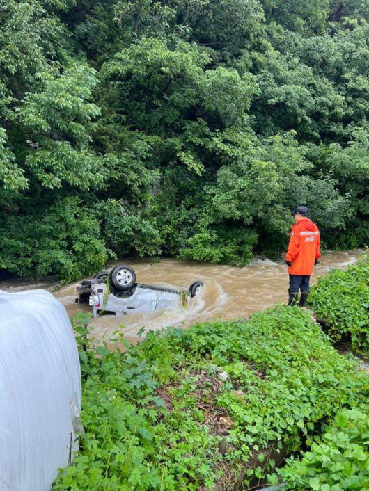 구조대는 차량 견인차를 동원해 하천에서 전복된 차량을 인양했고 운전석에서 60대 남성 A씨를 심정지 상태로 구조했다. A씨는 곧바로 병원으로 옮겨졌지만 끝내 숨졌다.