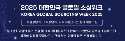 한국중소벤처기업유통원(한유원)이 오는 9월 열리는 '2025 대한민국 글로벌 소싱위크'에서 내수상담회 참여 희망 중소기업 450개사를 모집한다.
