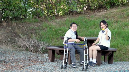 어딜 가나 눈길을 끄는 쌍둥이 자매가 있다. 1분 차이로 태어난 박지민(17), 박지수(17)가 그 주인공이다. 뇌병변 장애가 있어 혼자 걷기 힘든 동생 지수와 늘 지수의 휠체어를 밀어주고, 두 손을 꼭 잡고 계단을 오르는 ‘1분 언니’ 지민이. 사이 좋고 발랄한 쌍둥이 곁엔 늘 친구들이 모여든다. 학교에서 모르는 사람들이 없는 유명 인사란다.