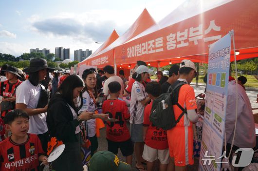 (서울=뉴스1) 이민주 기자 = 강원랜드(035250)가 운영하는 하이원리조트는 지난 19일 강릉하이원아레나에서 열린 강원FC와 대전하나시티즌의 K리그1 22라운드 홈경기에서 '하이원 브랜드데이'를 개최했다고 20일 밝혔다.