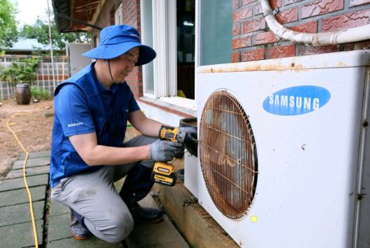 지난 18일 충남 예산군 삽교읍에서 삼성전자서비스 엔지니어가 수해 복구 특별 점검 서비스를 실시하는 모습. 삼성전자서비스 제공 |