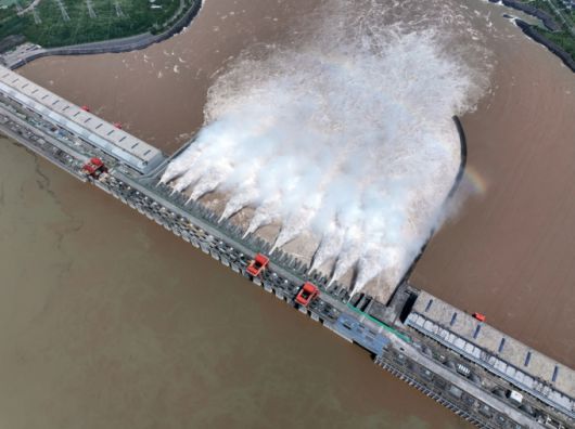 [우한=신화/뉴시스] 15일(현지시각) 중국 후베이성의 싼샤댐에서 양쯔강 상류의 홍수에 대비해 9개의 수문을 열고 물을 방류하고 있다. 2024.07.16. |