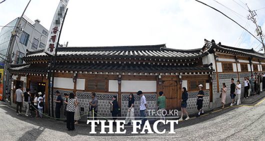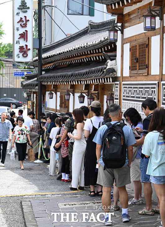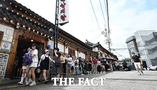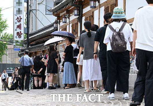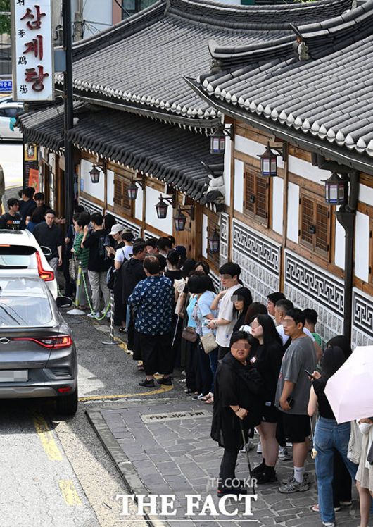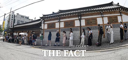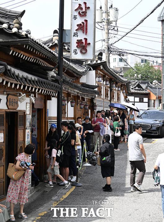 [더팩트ㅣ박헌우 기자] 초복인 20일 오전 서울 종로구의 한 삼계탕집 앞에 삼계탕을 먹으려는 시민들이 줄을 서고 있다.