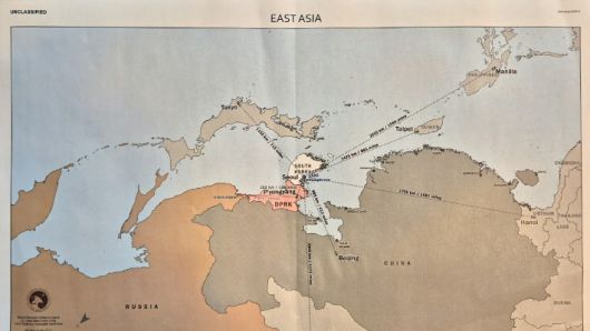 주한미군이 위아래가 뒤집힌 동아시아 지도를 제작해 주한미군 교육용으로 사용한 것으로 최근 확인됐다. 한미동맹재단 신경수 사무총장 제공 |