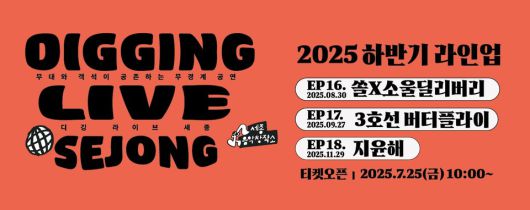 세종시문화관광재단은 세종음악창작소 대중음악 브랜드 '디깅라이브세종' 하반기 공연을 개최한다.