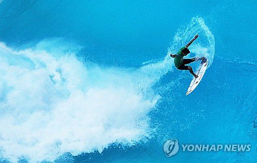 (시흥=연합뉴스) 홍기원 기자 = 20일 경기도 시흥시 정왕동 웨이브파크에서 열린 '2025 월드서프리그(WSL) 시흥 코리아 오픈 국제서핑대회'에서 참가 선수가 기량을 뽐내고 있다. 2025.7.20