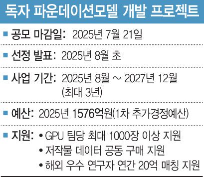 올해 1차 추가경정예산을 통해 총 1576억 원의 예산이 확보된 이번 사업은 최대 5개 컨소시엄(팀)을 선정, 팀당 최대 1000장 이상의 GPU, 연간 30억~50억원의 데이터 구축비, 해외 인재 유치비 최대 20억원까지 차등 지원할 예정이다. 개발 모델의 오픈소스 공개 범위에 따라 정부 매칭 지원 비율은 달라진다.