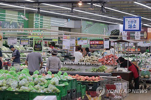 (서울=연합뉴스) 류효림 기자 = 20일 서울 서초구 양재 하나로마트 채소판매대에서 시민들을 장을 보고 있다. 폭염에 이어 폭우 피해로 인해 채소 가격 급등 우려가 커지고 있다. 2025.7.20